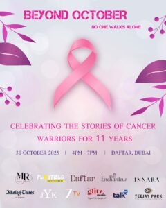 Continuing its 11th year, the Beyond October Cancer Awareness Campaign spearheaded by Dubai based senior journalist and media personality, Manju Ramanan will be held at Daftar DIFC on October 30, 2025 this year.